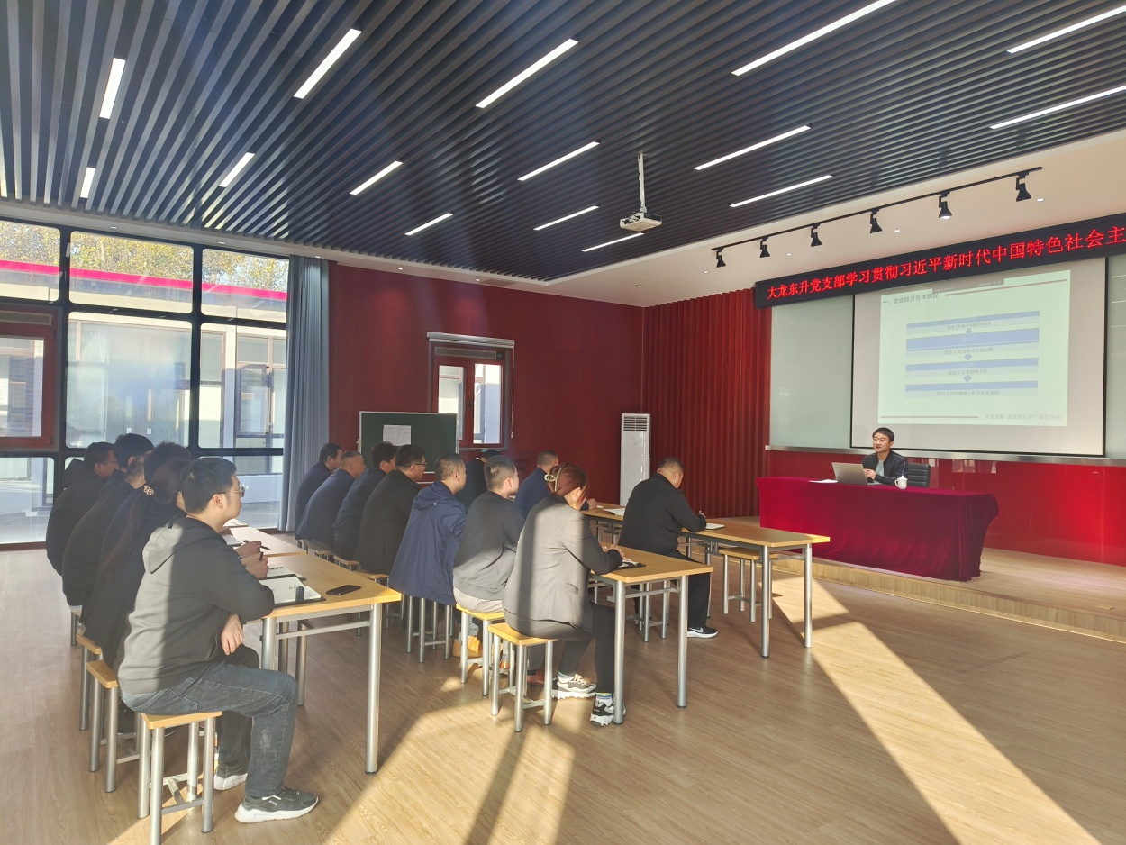 为深入扎实开展学习贯彻习近平新时代中国特色社会主义思想主题教育,10月27日,大龙东升党支部在公司展厅会议室开展专题党课学习,支部书记主讲,党支部全体党员、积极分子参加。